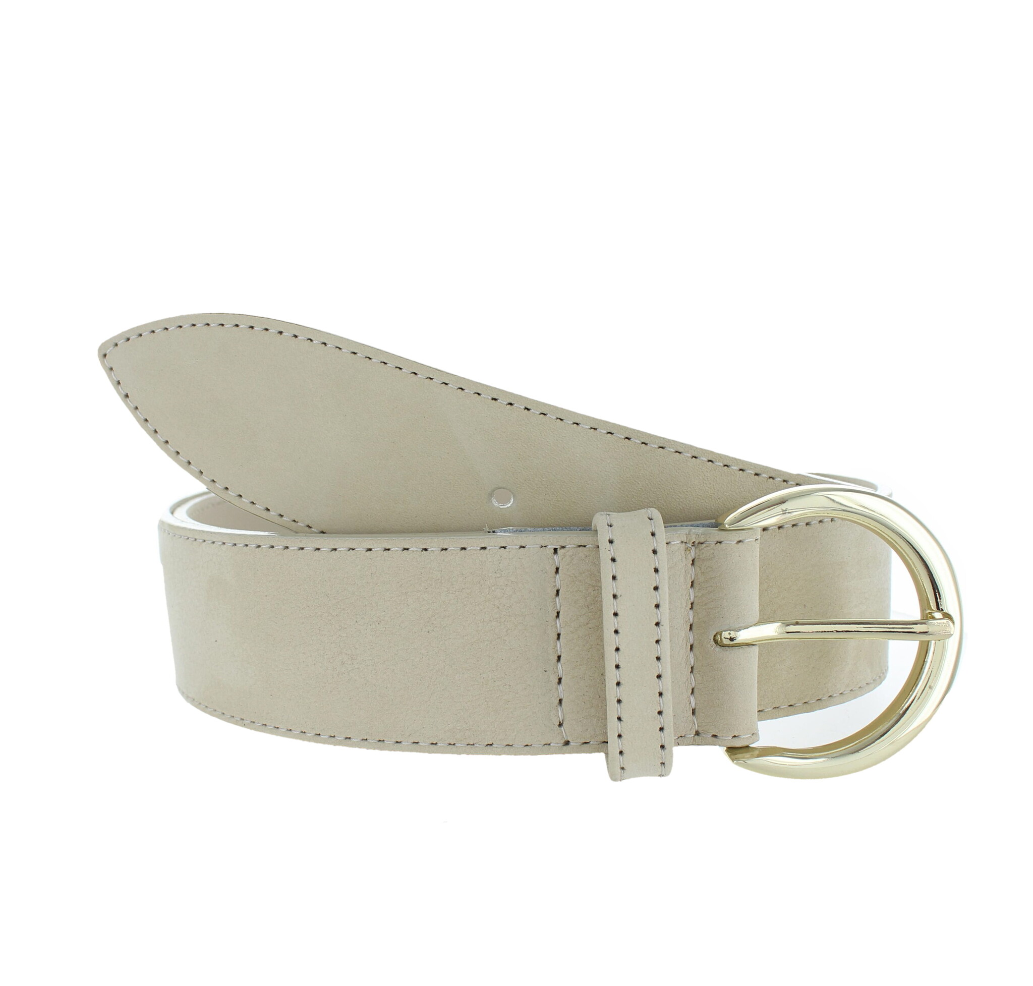 Dankzij de breedte van 4 cm is deze damesriem veelzijdig te combineren met zowel casual als geklede outfits. De goudkleurige, nikkelvrije gesp vormt een elegant contrast met het lichte leer en maakt de riem tot een subtiel statement binnen je outfit.