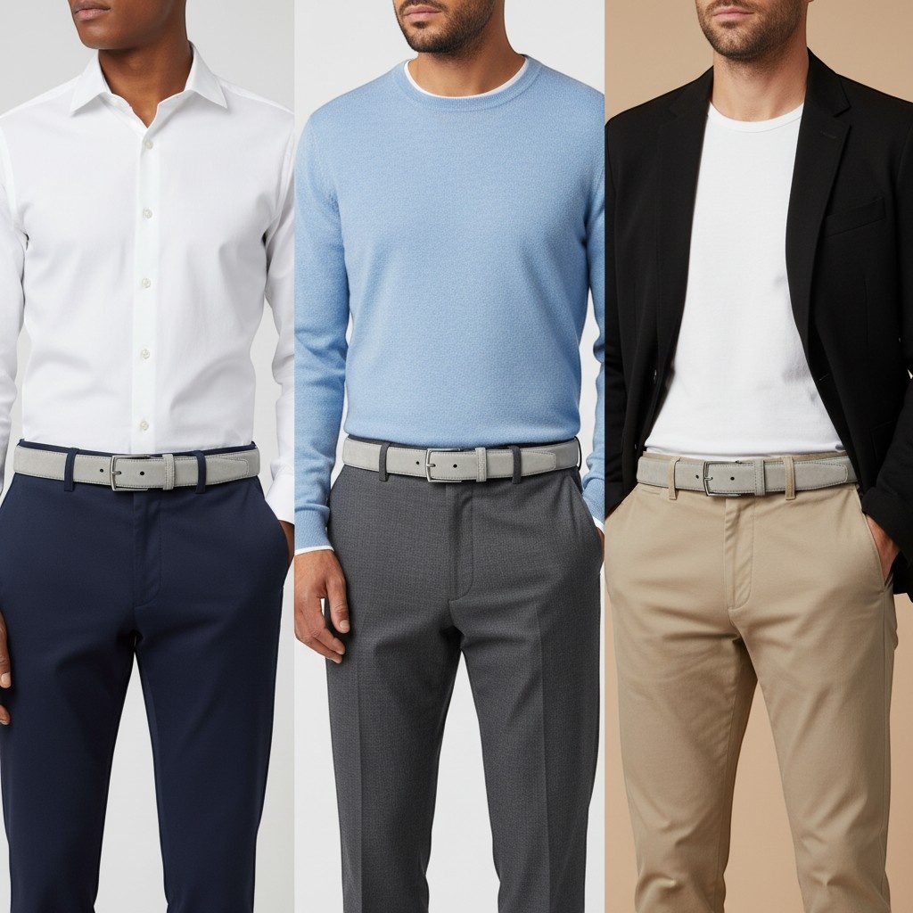 BRADBURYGuiseppe | Nubuck herenriem 3,5cm | Lichtgrijs