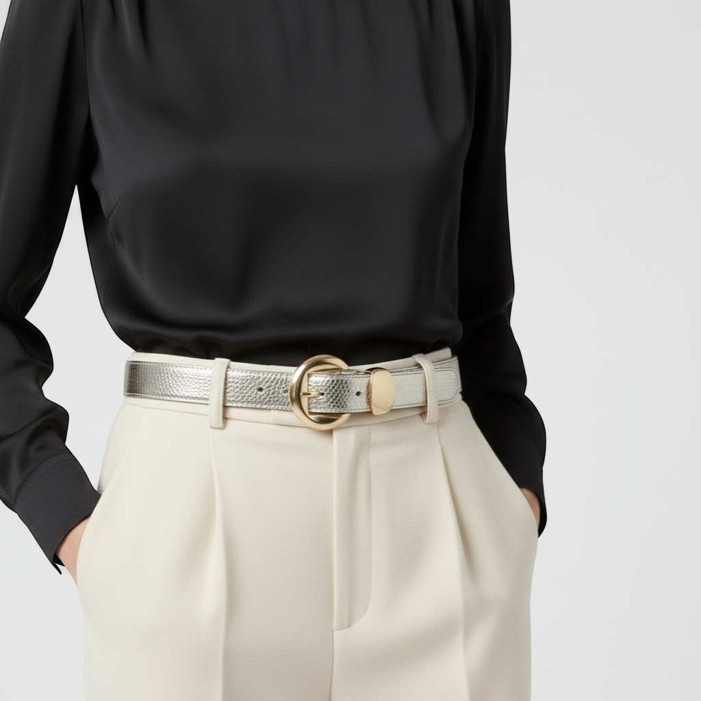 Dankzij de smalle breedte is deze riem ideaal te dragen bij een pantalon, jurk of blouse, en eenvoudig te combineren met zowel casual als meer geklede outfits.