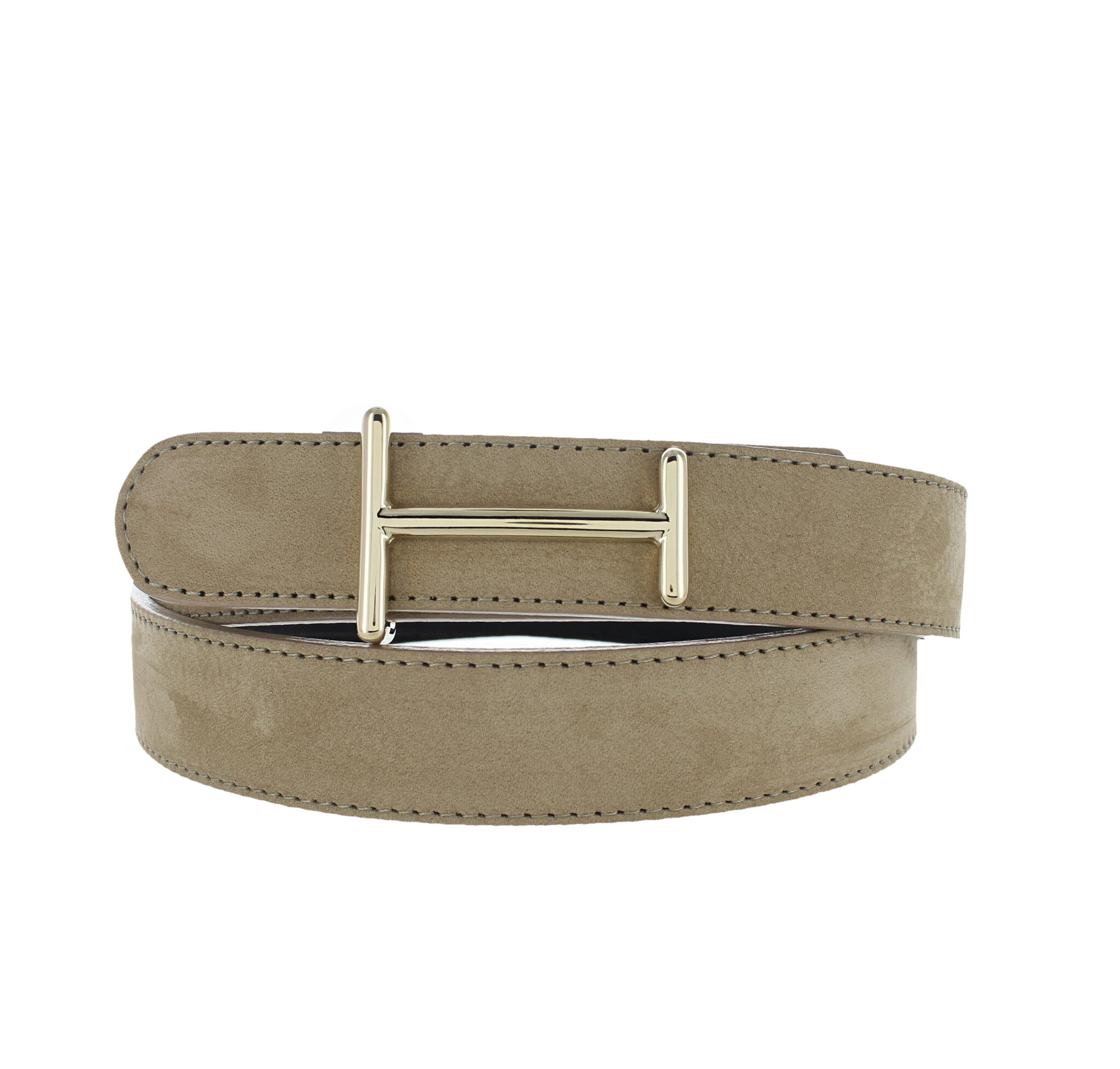 Deze beige nubuck damesriem van het merk H.A.N is ontworpen voor vrouwen die houden van een rustige, verfijnde uitstraling.