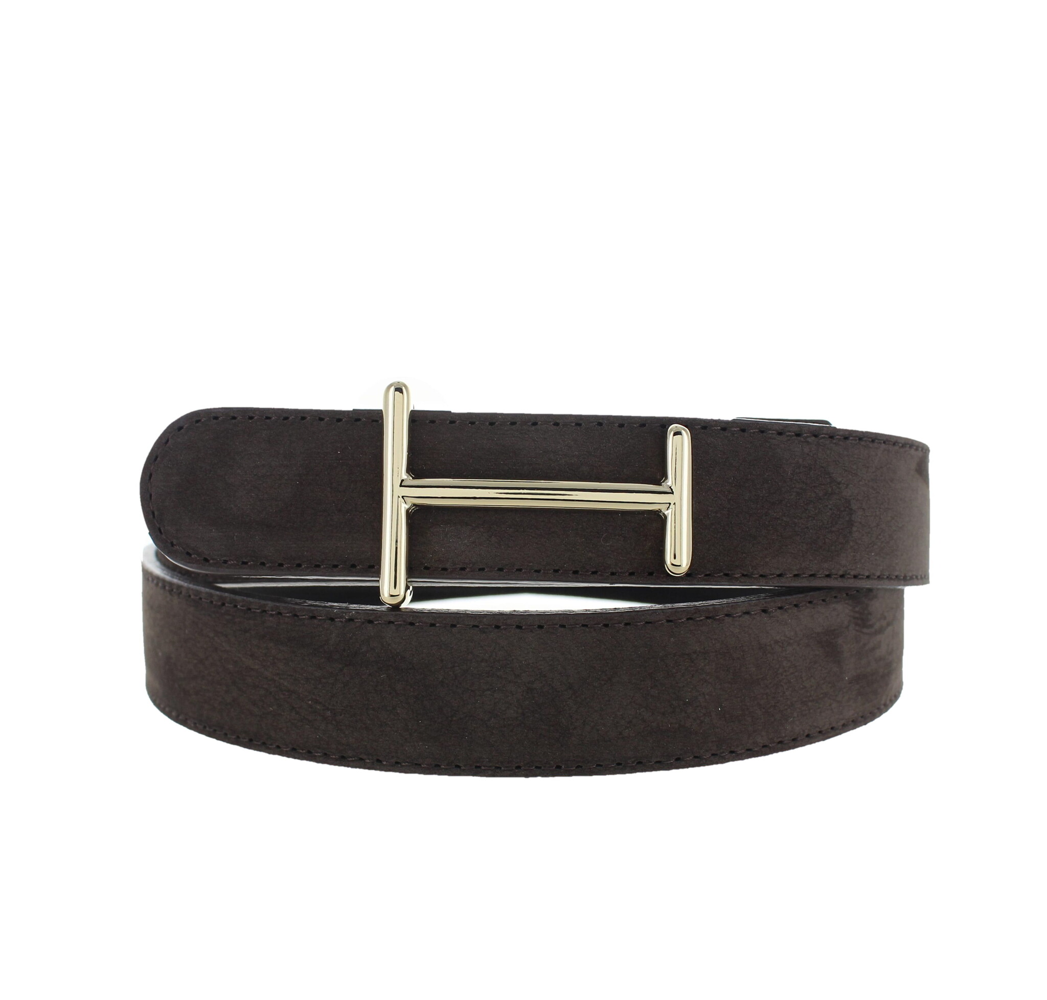 Deze donkerbruine nubuck damesriem van het merk H.A.N is ontworpen voor vrouwen die houden van een rustige, verfijnde uitstraling.