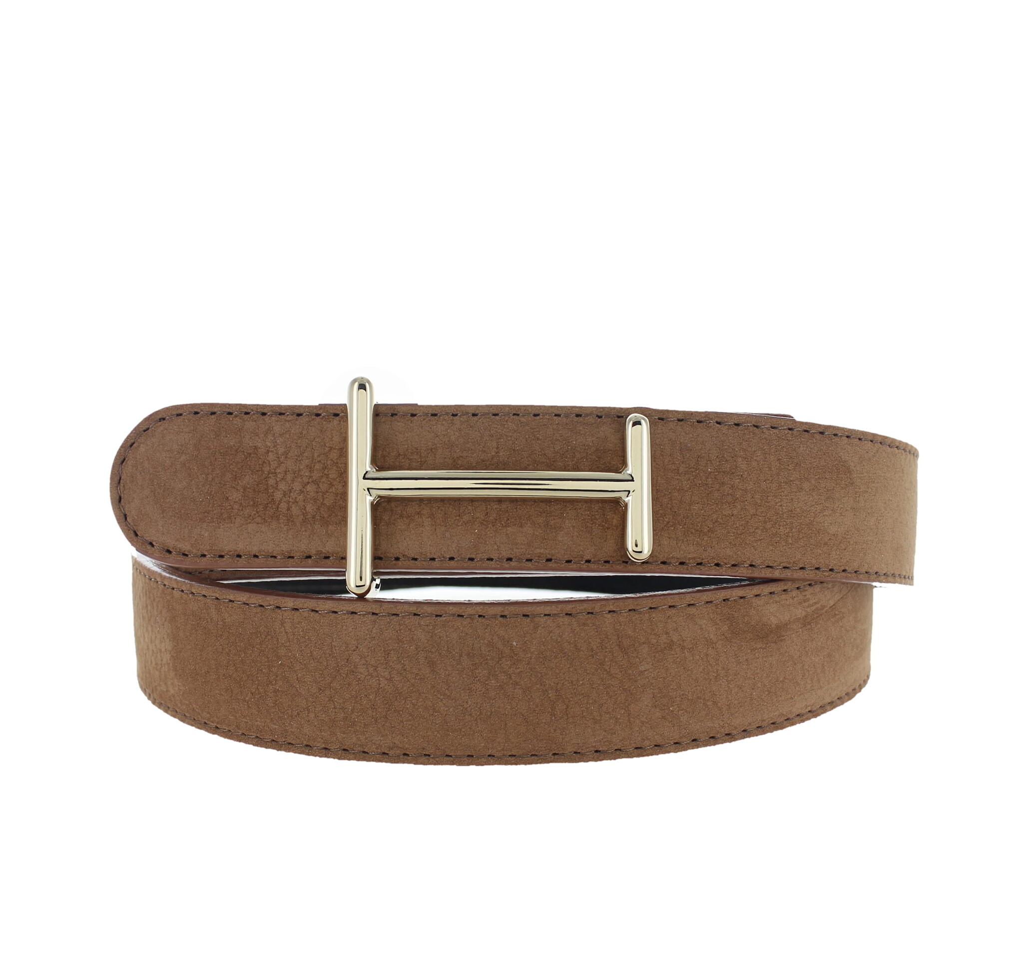 Deze lichtbruine nubuck damesriem van het merk H.A.N is ontworpen voor vrouwen die houden van een rustige, verfijnde uitstraling.