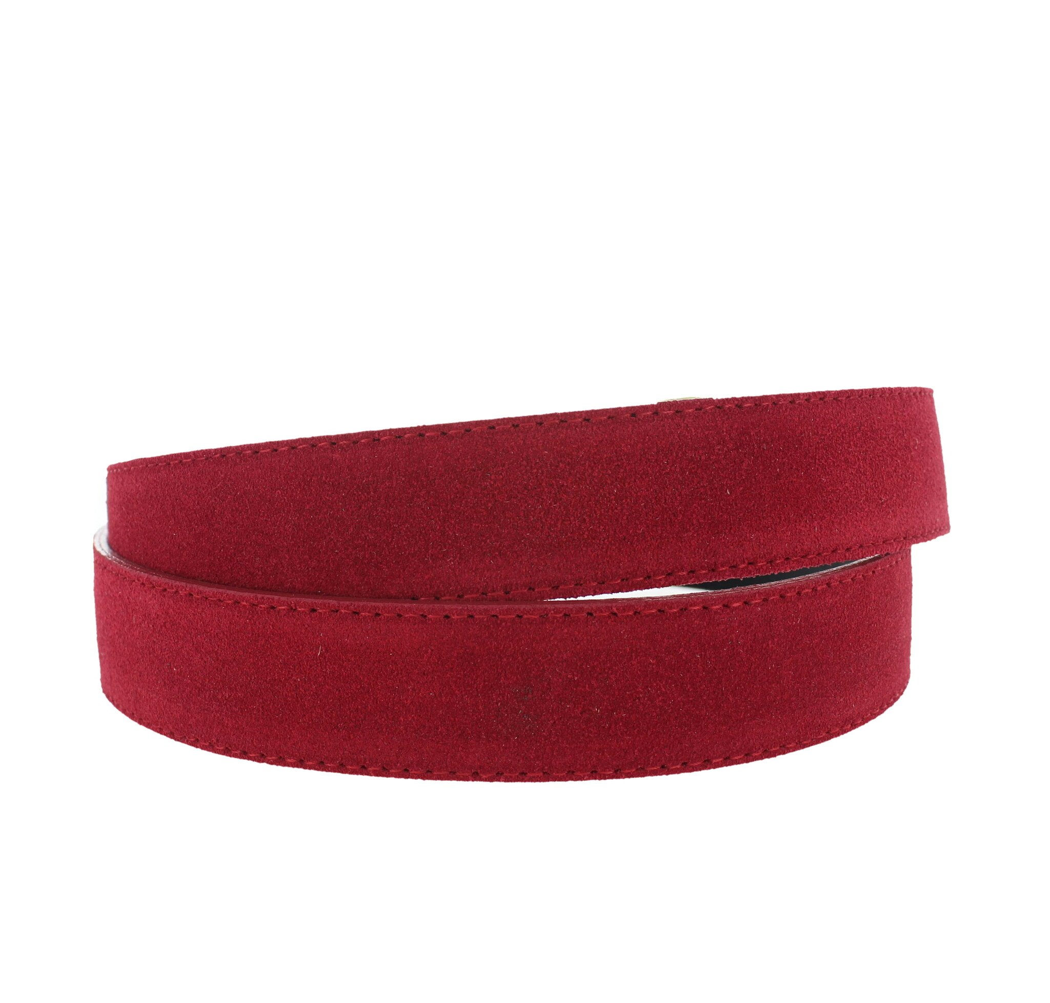 Stijlvolle suède damesriem van 3 cm breed in het rood is een elegante en tijdloze accessoire die moeiteloos past bij iedere outfit.