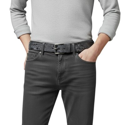 JOB86Luigi | Kroko herenriem 4,5cm | Zilverzwart